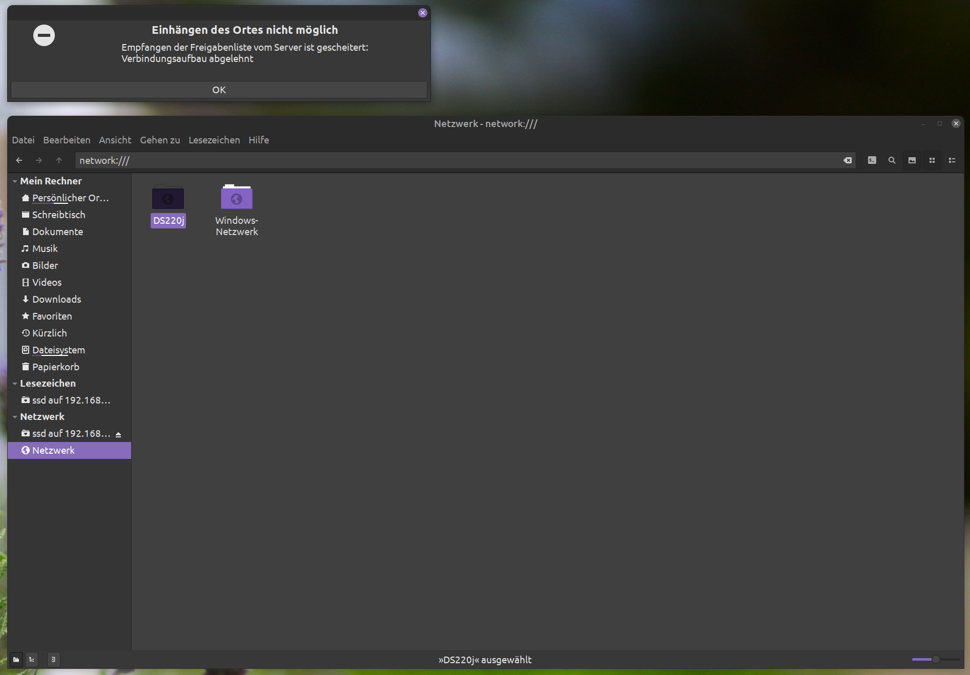 Wenn ich über "Netzwerk" und auf DS220j gehe, kommt diese Meldung das es nicht möglich ist.