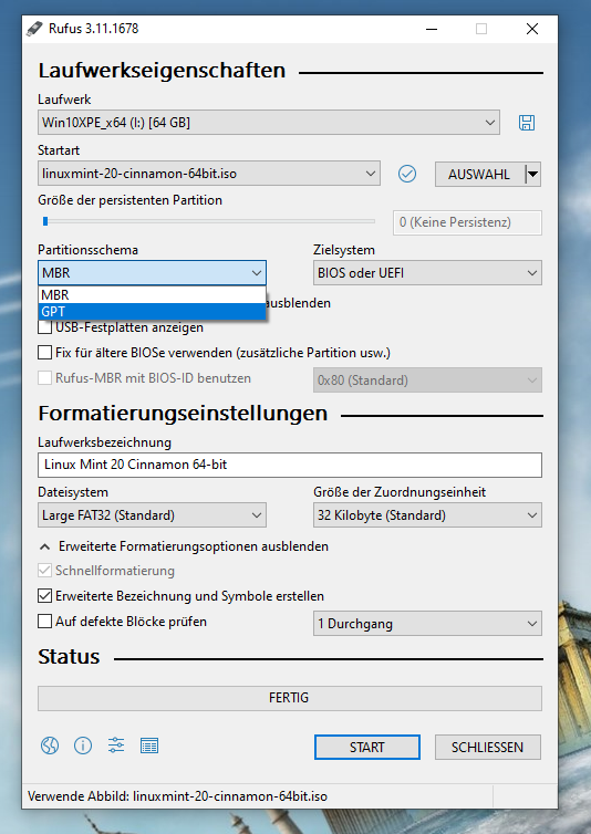 ich habe gerade mit Rufus einen USB Stick mit Linux Mint 20 installiert. Die Version ist nach dem booten aber auf englisch. wie kann Ich das gleich so auf den Stick bringen das es auch als deutsche Version bootet?