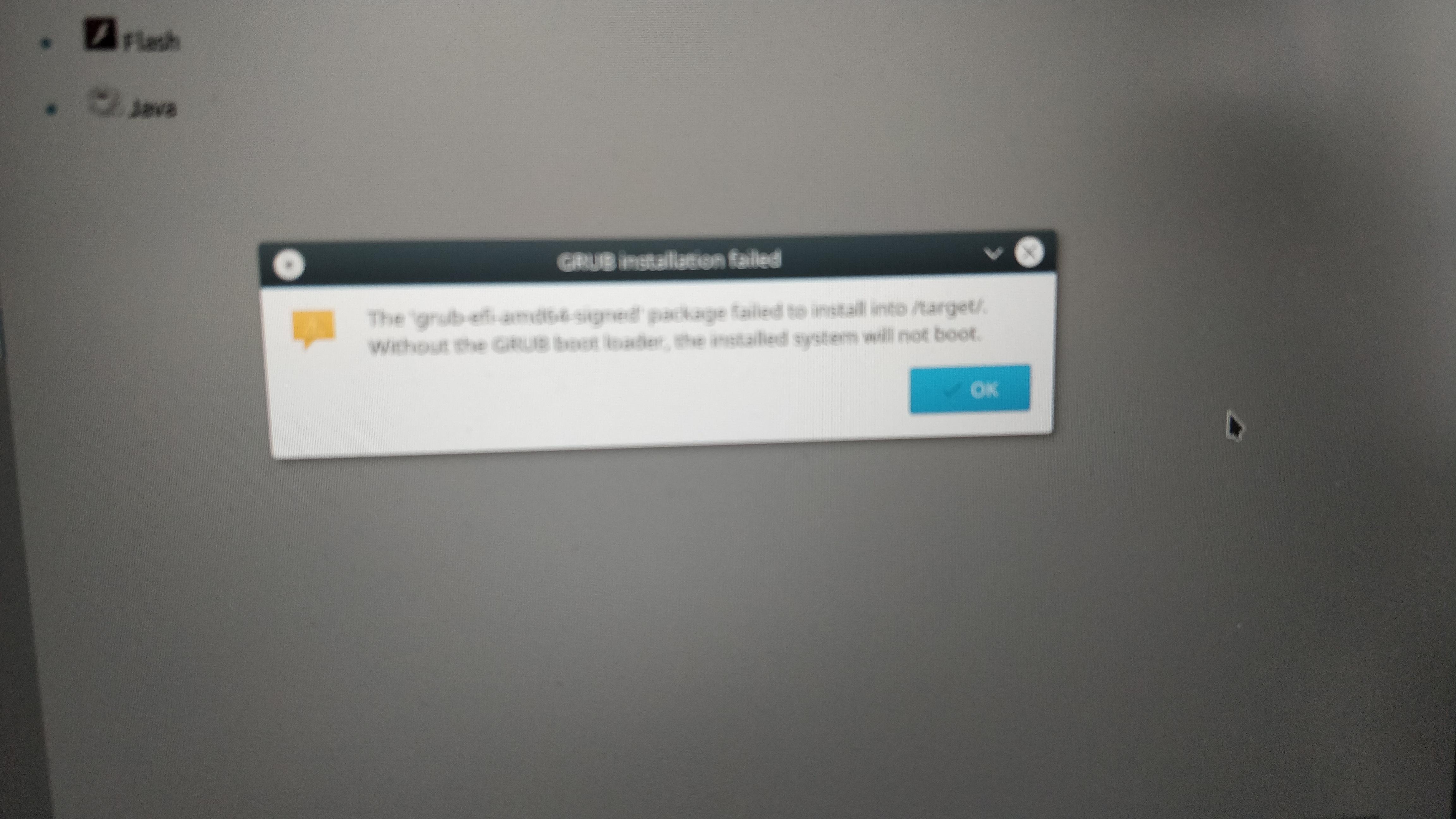 - Ohne die im vorherigen Bild erkennbare zweite efi Partition enden meine Mühen mit dieser Fehlermeldung
