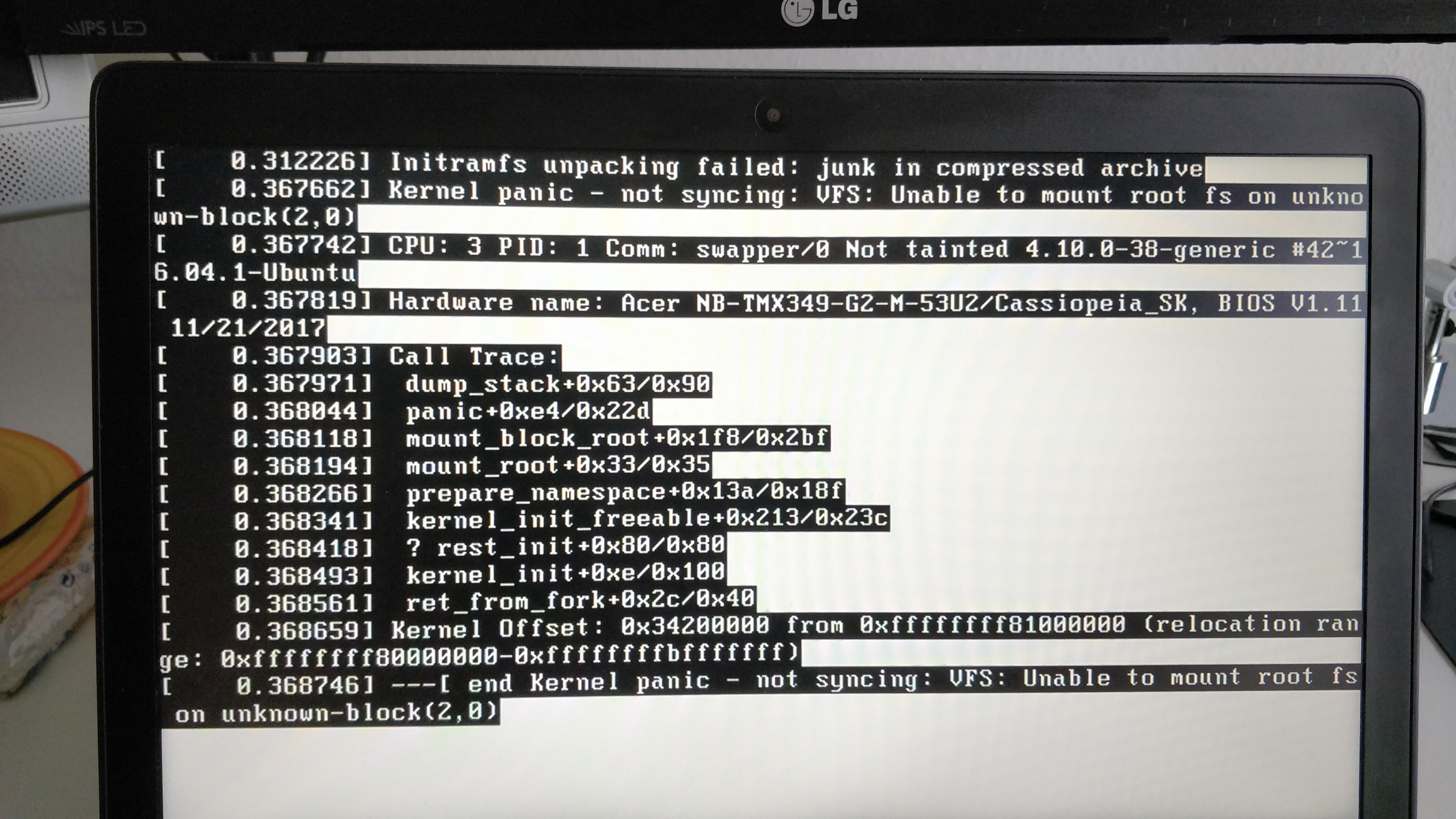 - Die Verwendung des "Legacy Boot Mode" endet in Panik seitens des Kernels.