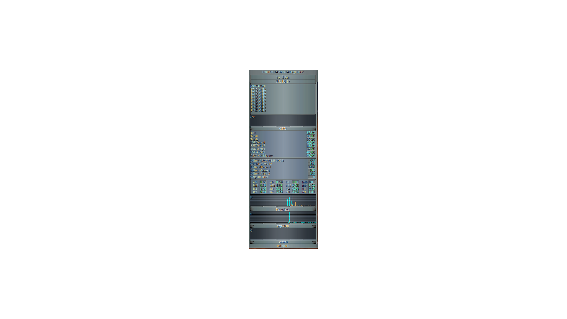 @Methylherd Seit einer gefühlten Ewigkeit Kubuntu / Debianbasierend. Korrekter Pfad ja, reingeschrieben nie, vielleicht mein Unvermögen. Aber mit meiner Lösung gehts. GKRELL zeigt ob alles korrekt läuft.
