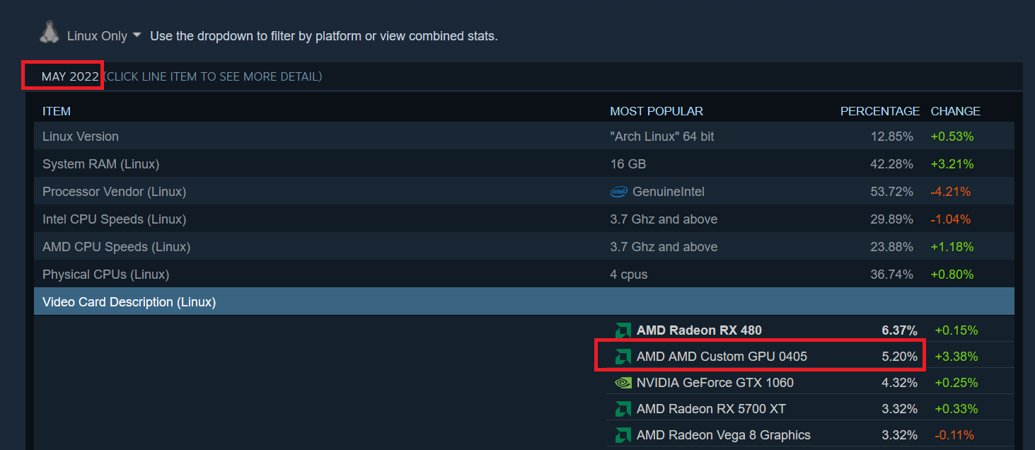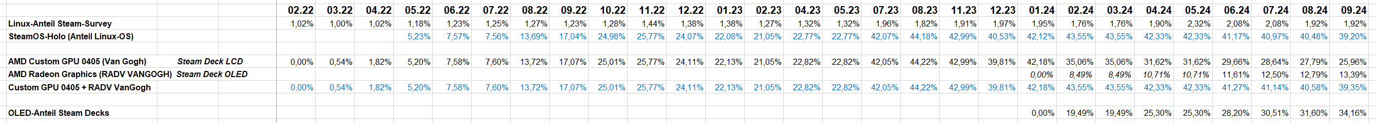 Du hast dich vermacht. Aerith / VanGogh ist das LCD-Modell, Sephiroth ist das OLED-Modell.Cohen schrieb:35,72 % AMD Custom GPU 0405 = Steam Deck LCD, 19,40% RADV VanGogh = Steam Deck OLED