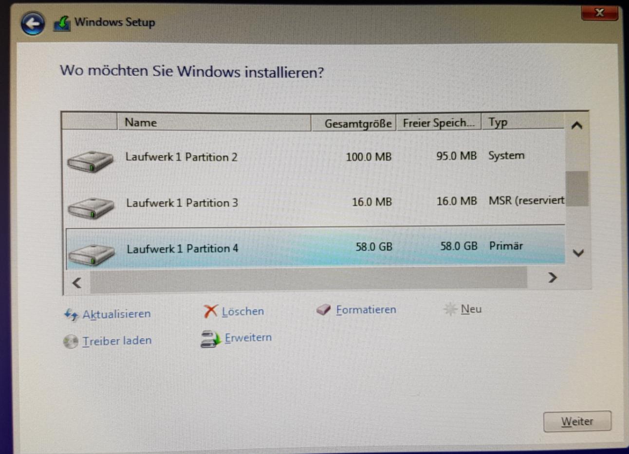 eventuell noch Standard Windows-Installation auswählen. (Falls dieser Punkt überhapt auftaucht)