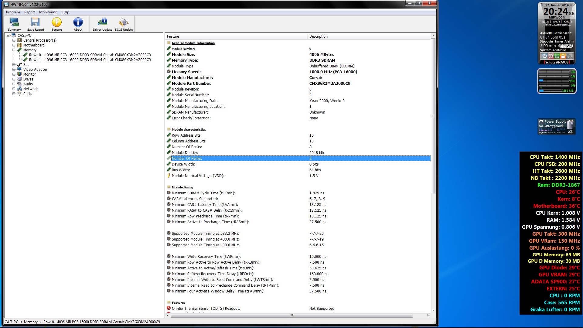 Corsair 8GB Kit 2000MHz,8Chips je Seite.