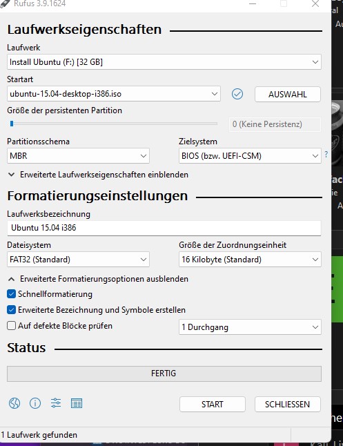 Also nochmal. Wenn Du nur ein LiveLinux zur Fehlerbehebung einsetzen willst,kannst du theoretisch alle Voreinstellungen bei Rufus beibehalten. Und nimm hierfür einfach das Ubuntu 22.04.