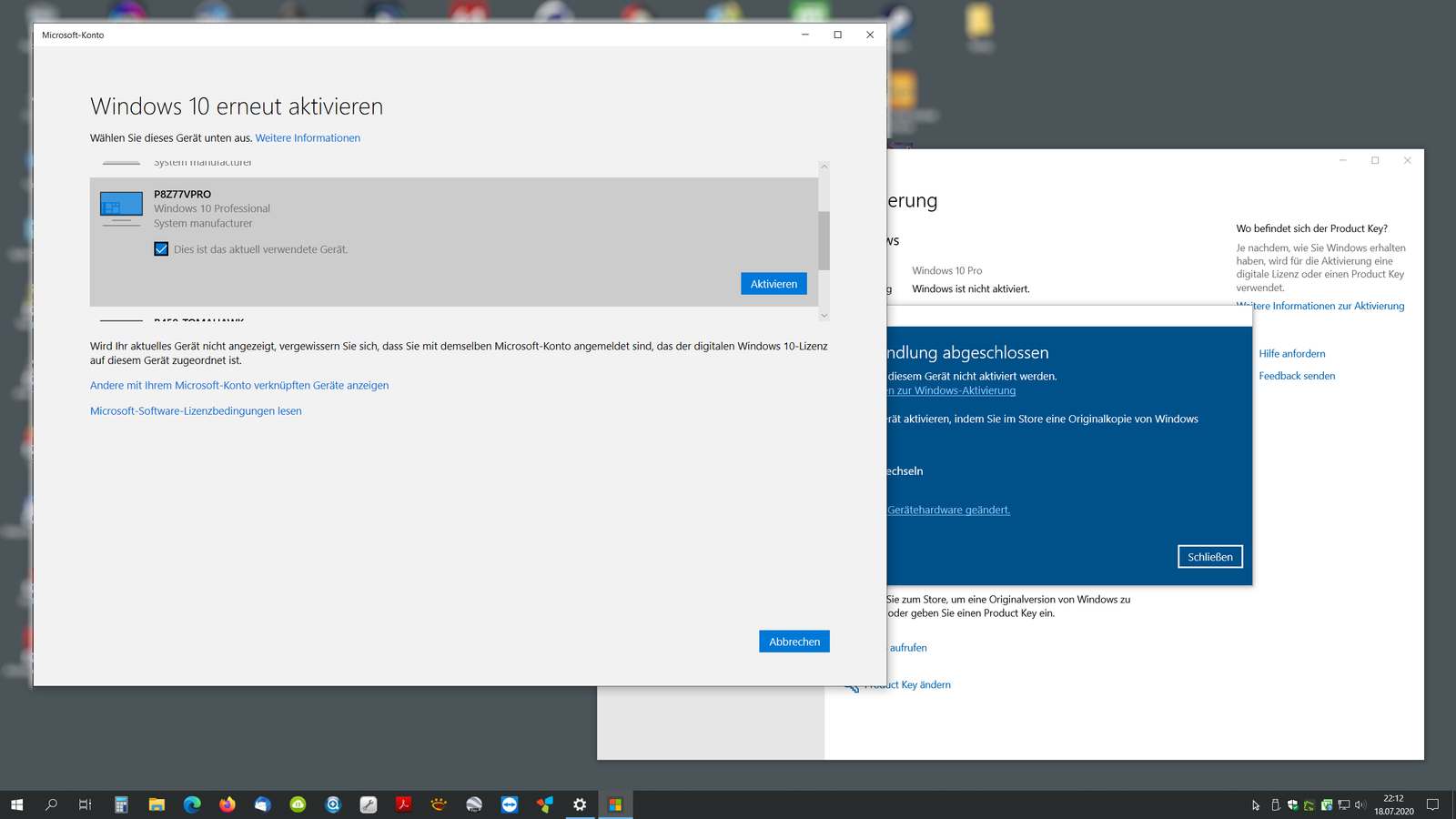 Ich will eine Windows 10 Lizenz auf einen anderen PC übertragen. Die Lizenz ist schon sehr alt und stammt noch aus Windows 7. Da ich den Key verbummelt habe, will ich die Lizenz nun an ein Konto binden, bevor ich den alten Rechner außer Betrieb nehme, um den neuen Rechner über dieses Konto dann als "Hardwareumrüstung" zu aktivieren.