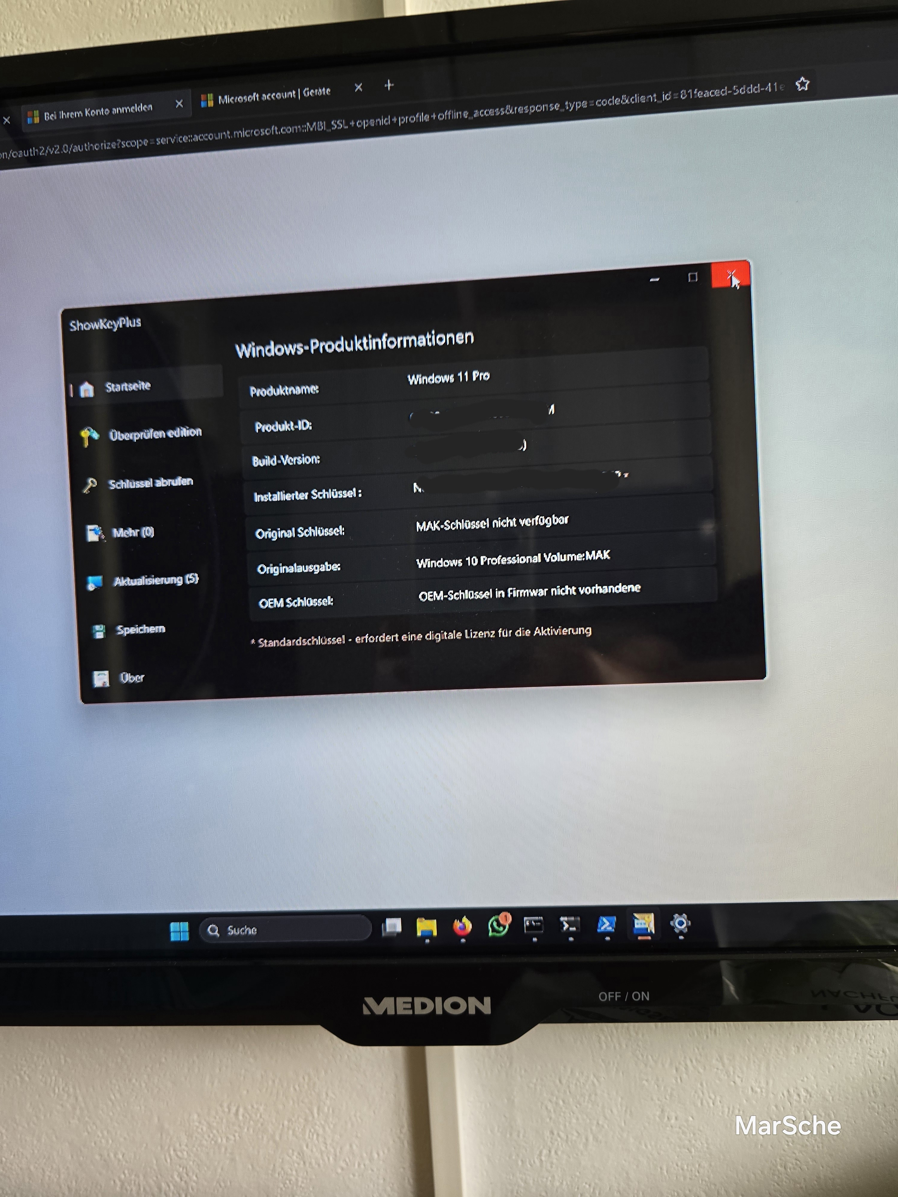 Wenn ich den Produktkey anzeigen lasse stammt dieser aus meiner vorherigen Windows 10 Pro. Dort steht Win10 RTM Professional OEM