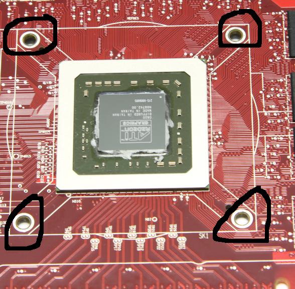 naja er meint die 4 bohrungen die um die gpu herum verteilt sind