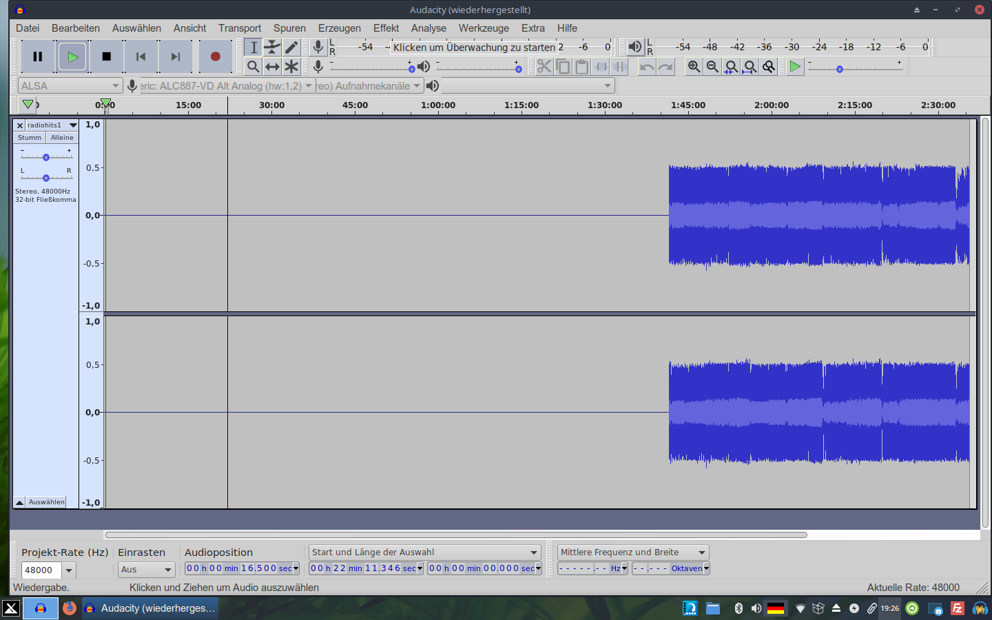 Es sieht so aus, als ob am Anfang der Datei über 100 min Stille ist. Stimmt das? Wenn ja, wird diese natürlich ebenfalls importiert.