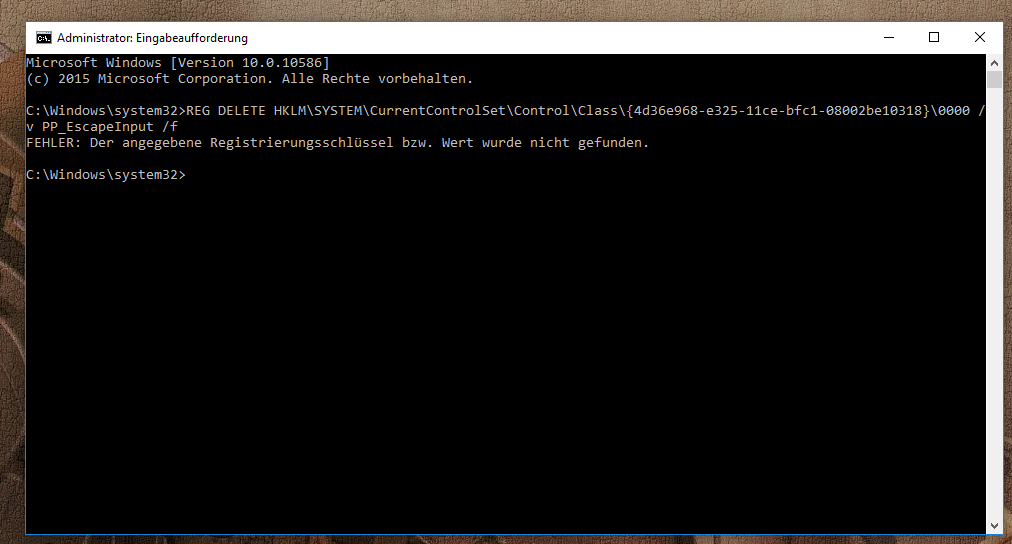 REG DELETE HKLM\SYSTEM\CurrentControlSet\Control\Class\{4d36e968-e325-11ce-bfc1-08002be10318}\0000 /v PP_EscapeInput /f