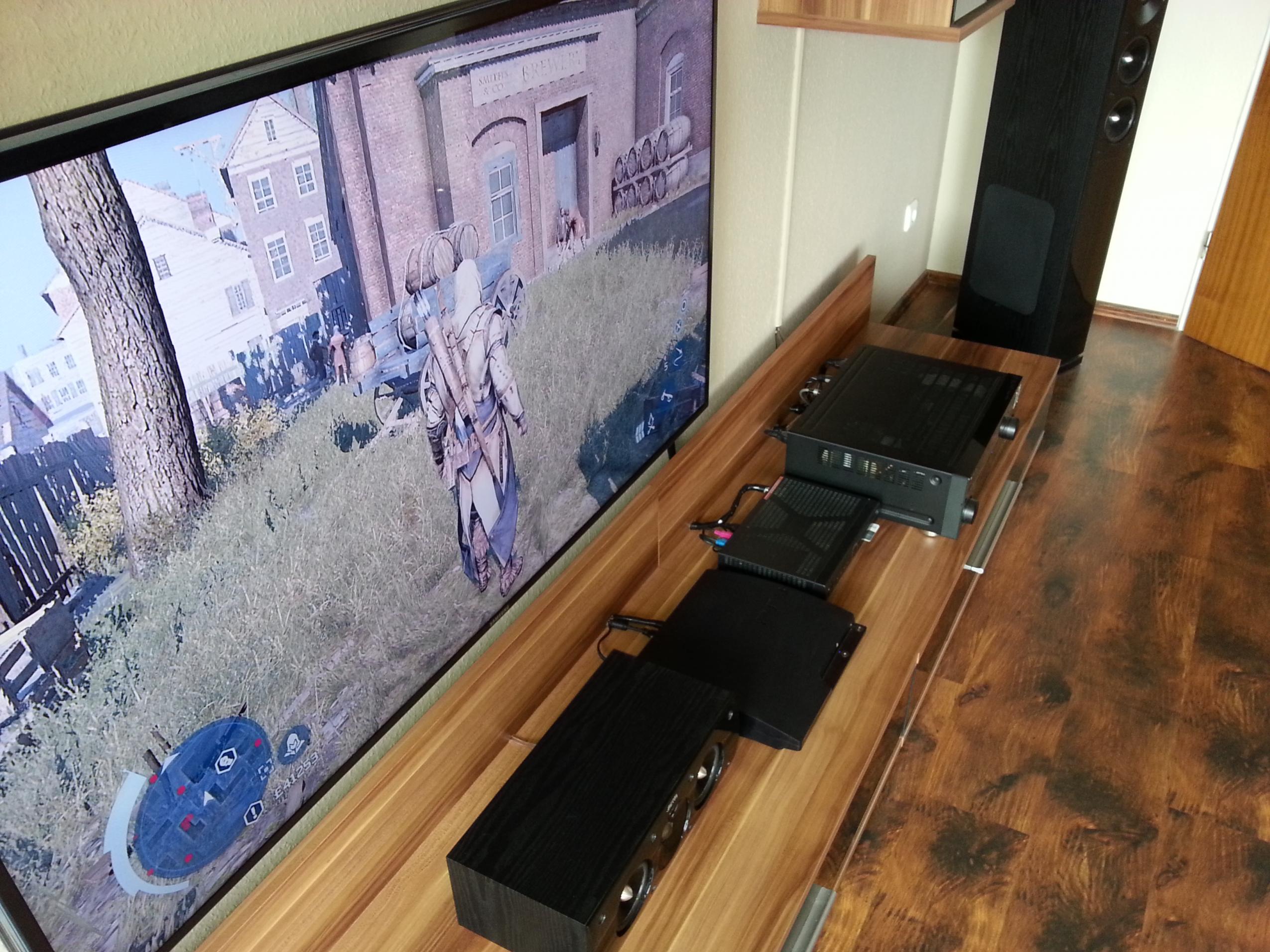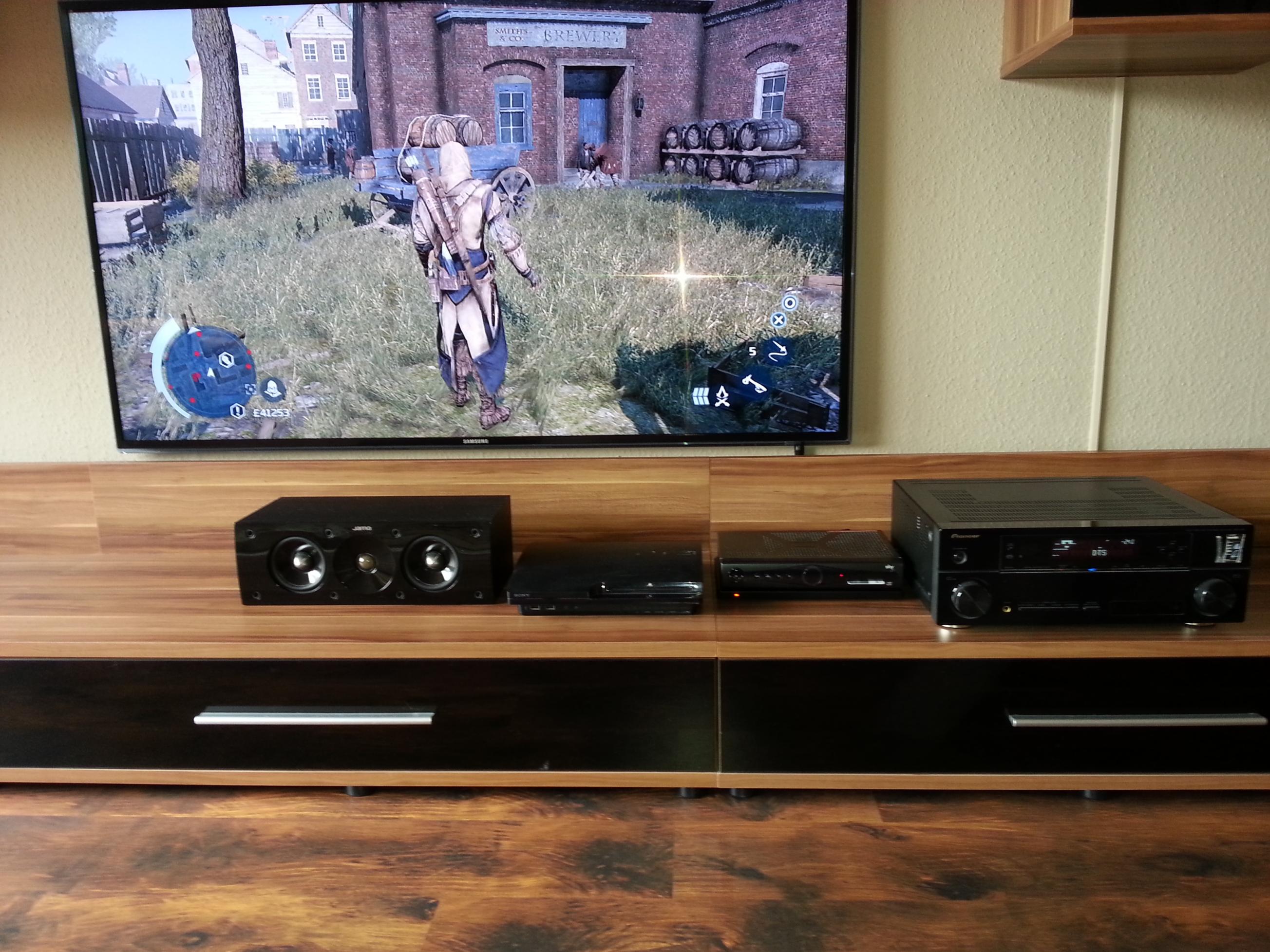 Die Box in die Mitte und links und rechts Ps3 und der sky Receiver wäre in der Tat vielleicht besser, aber nun zu spät