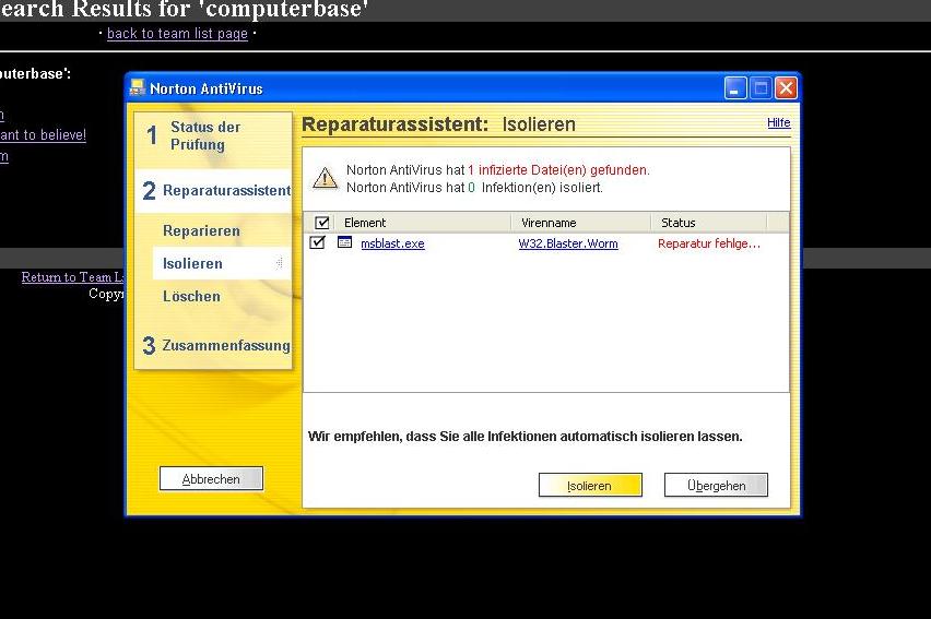 Norton 2002 hat heute bei mir die msblast.exe als Wurm entdeckt.