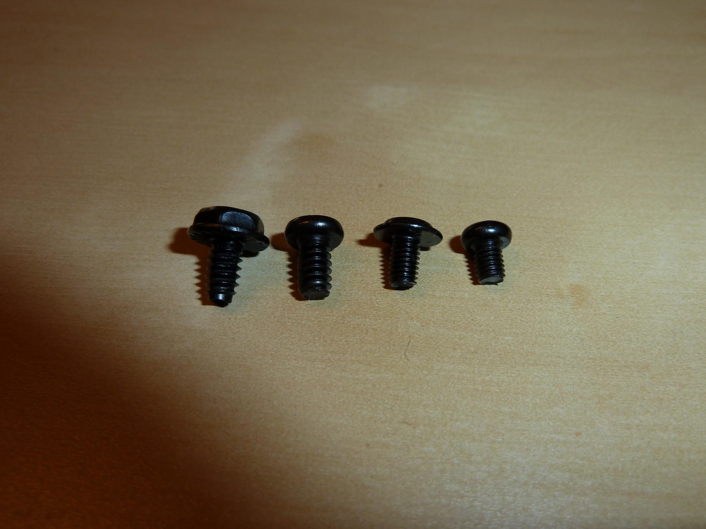 hab mal nen foto von den schrauben gemacht...momentan hab ich die 2 von links drin...aber in dem video hier bei 26 sek. http://www.youtube.com/watch?v=YBOlCN7j4JE werden die ganz linken auf meinem foto verwendet(die bei mir die lötstelle abgeschliffen haben)...welche von den schrauben sollte ich denn nun nehmen?