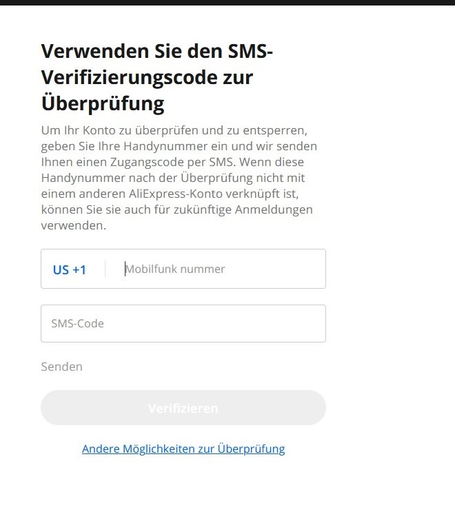 Seit neuerem bekomm ich dann immer die Meldung Verwenden sie den SMS-Verifizierungscode zur Überprüfung. Was aber nicht funktioniert, da ich bei Aliexpress keine Telefonnummer angegeben habe und selbst wenn ich in das Fenster eine eingebe bekomme ich keinen Code bzw. kann da dann nix klicken. Gehe ich dann auf andere Möglichkeiten zum Anmelden bekomm ich nur melden sie sich über Authentifizierung am Handy an, da ich sowas ja aber nicht eingerichtet habe geht das natürlich nicht.