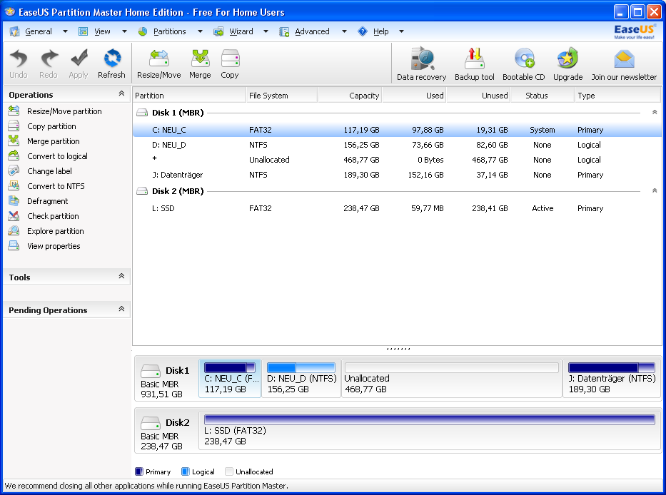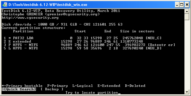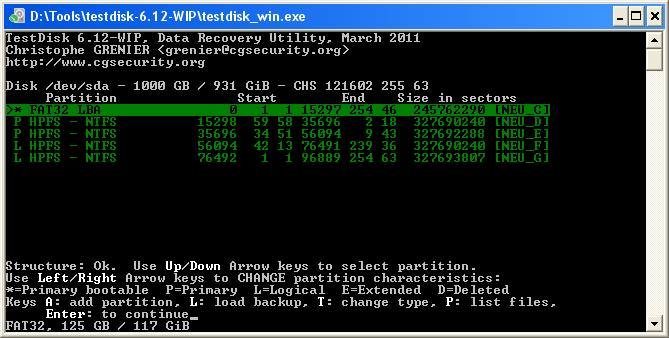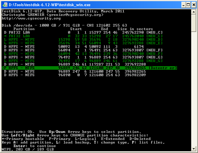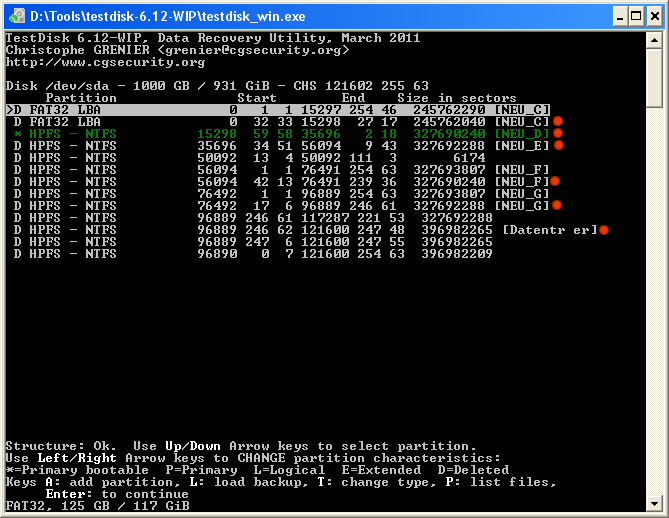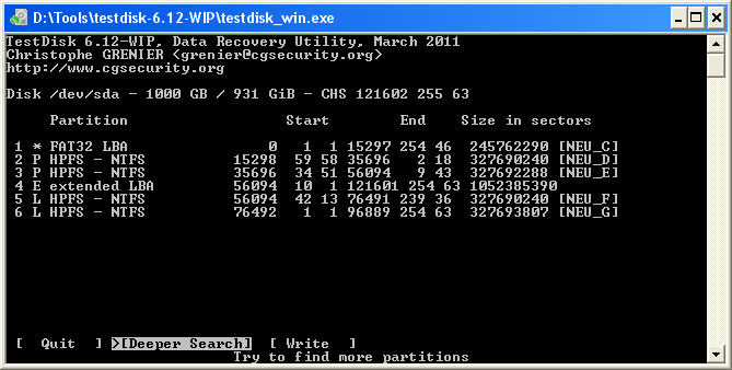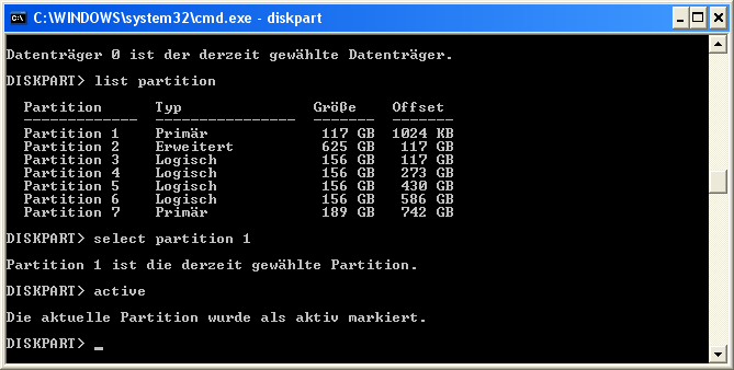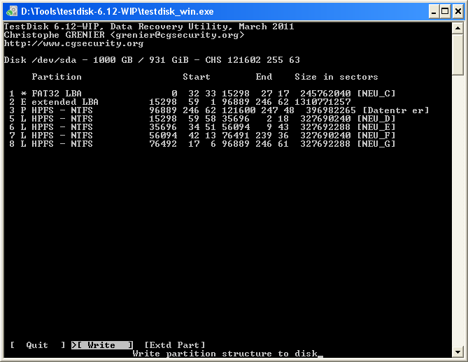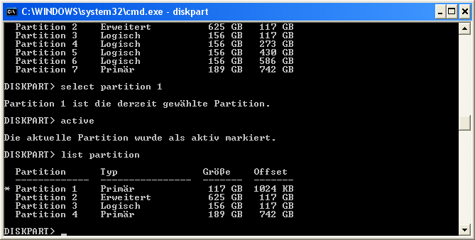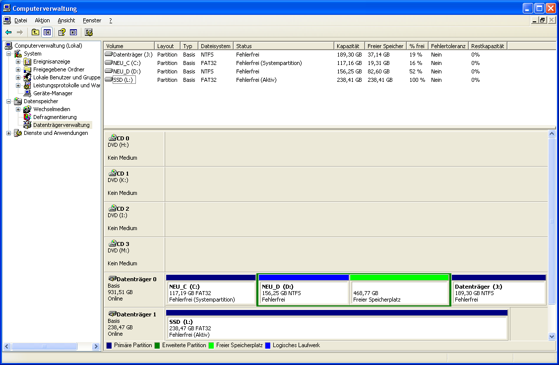 Danach waren 3 logische Luafwerke in einer erweiterten Partition (Buchstaben E, F, G) nicht mehr zugeordnet, siehe Anhang.