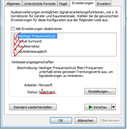 Die Verbesserungseigenschaften stehen auch auf Aktiviert und nicht Deaktiviert wie auf dem Bild