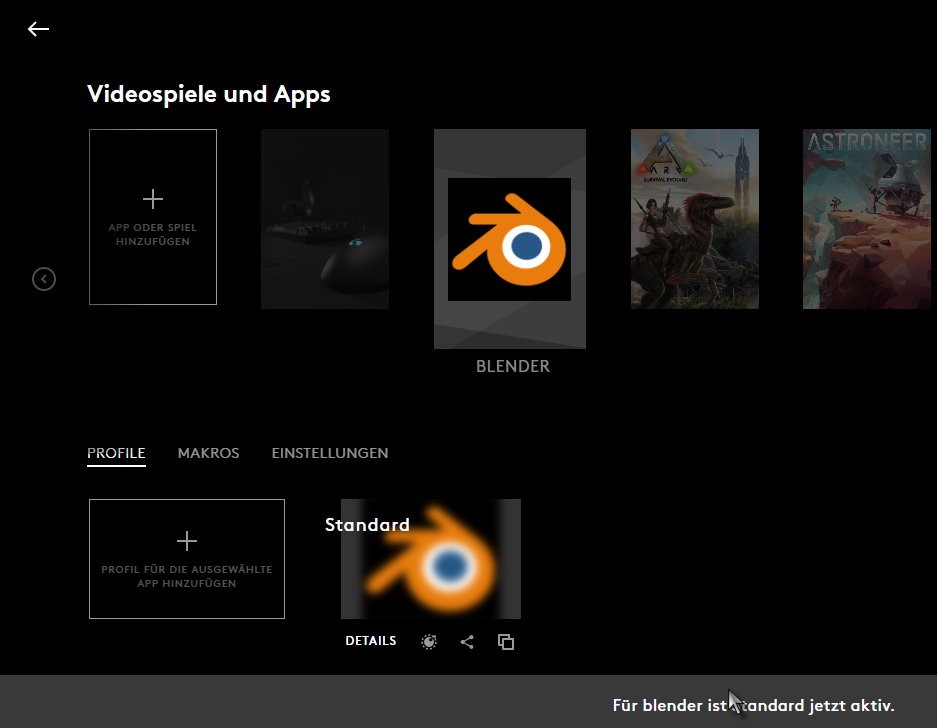 Meine Tastatur ist übrigens nun zu dem typischen Logitech-Blau gewechselt und nicht zu dem Set des ausgewählten Profils!