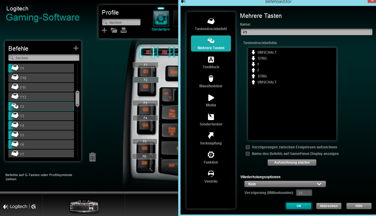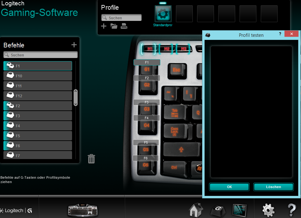 Allerdings wenn ich das Profil teste, dann reagiert er nicht auf die Makrotasten (alle anderen Tasten werden natürlich als gedrückt angezeigt).