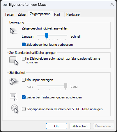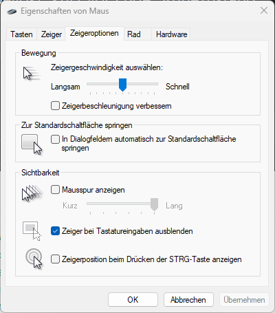 Da ich nichts gefunden (Windows + Treiber), kann man irgendwo diese Zeigerbeschleunigung einstellen, so das der Curser nicht völlig am Kabel dreht?