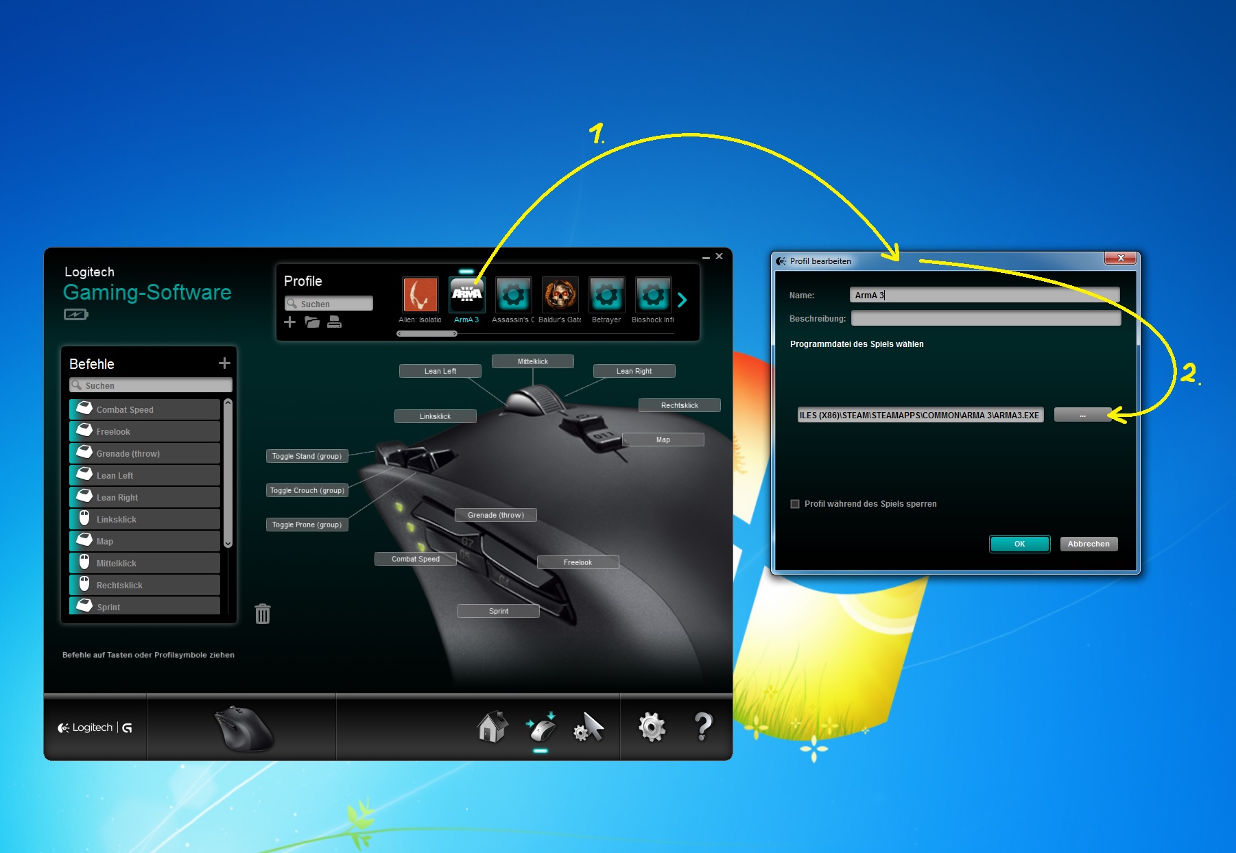 Ich habe auch die Logitech Software und Treiber installiert und in der Software kann ich auch Funktionen auf die Tasten legen nur halt nicht in spielen auser auf die 3 standard Tasten.