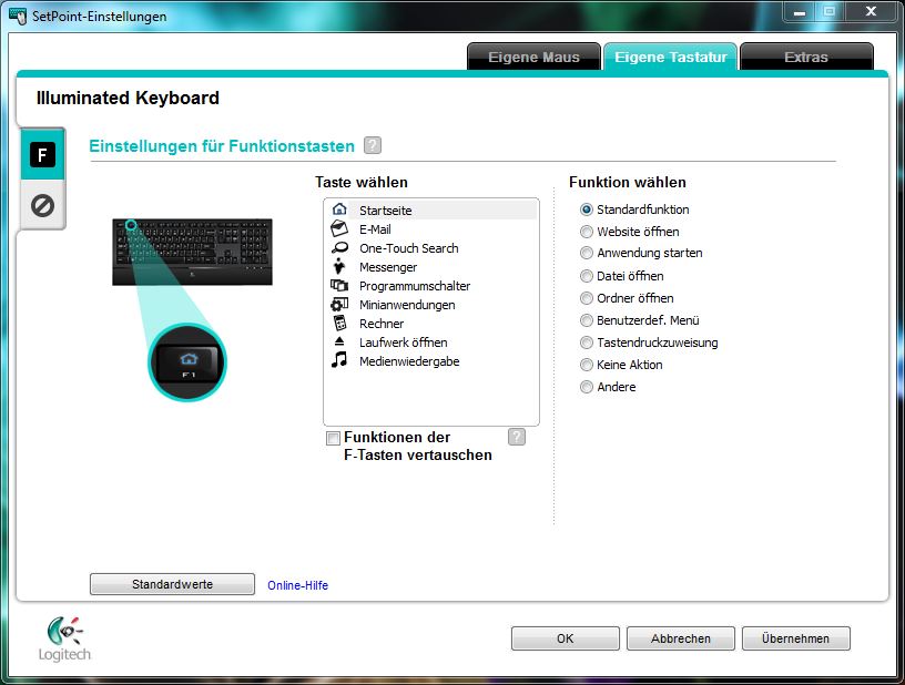 Logitech Illuminated Keyboard: SetPoint Software zum Konfigurieren?