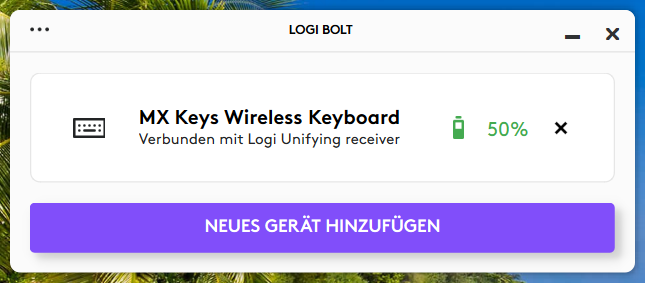 Habe eine Logitech MX Keys Tastatur hier. Die wurde mit einem Unifying Empfänger ausgeliefert.