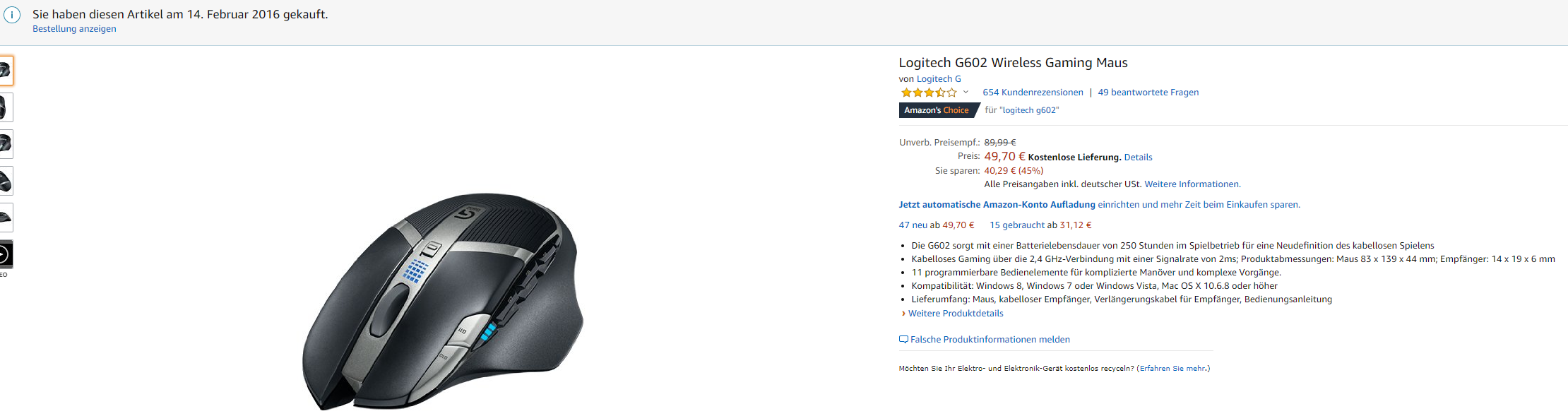 Das ist genau der Vorteil von einem Standard-Akku! Ich hasse Mäuse, welche einen proprietären Akku verbaut haben.