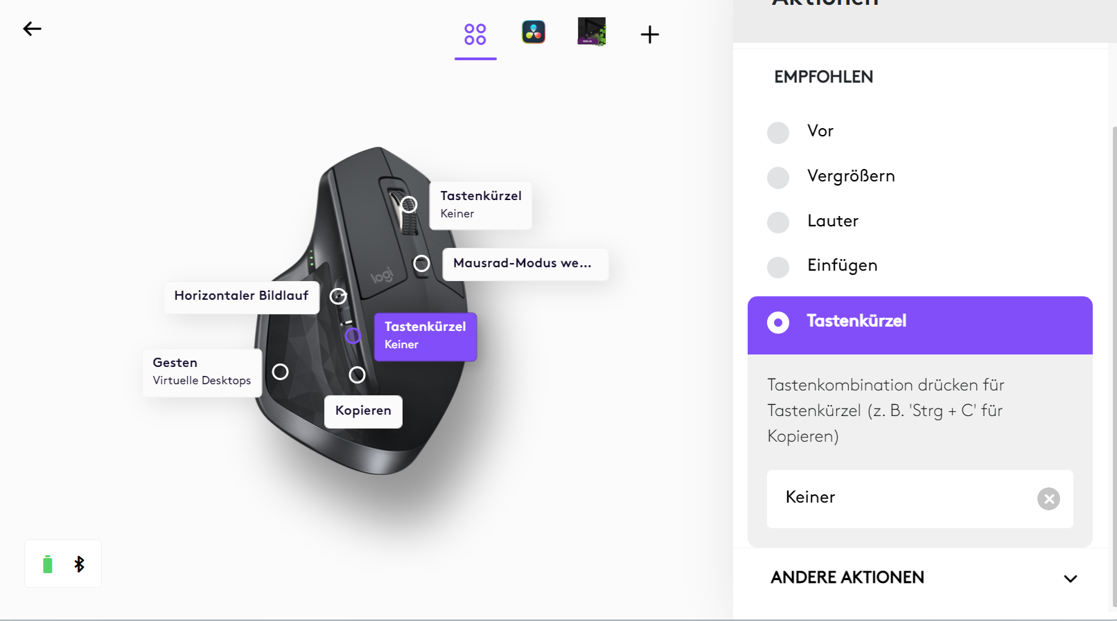 Mein Problem : Möchte der Mittel und den beiden Seitentasten Shortcuts zuweisen . Soweit so selbsterklärend in der Software .