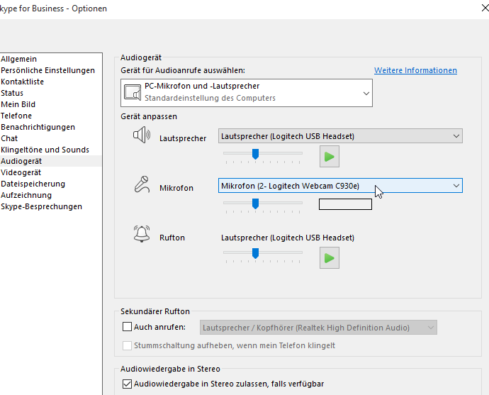 Unter Skype/Audioeingeschaften ist unter Mikrophon ein "kein". ich kann auch nichts wählen.