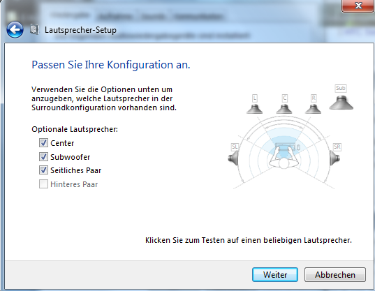 Im audio manager nach auf 5.1 gestellt, aber beim testen zeigt es mir nur Center, Subwoofer, Rear links und rechts an... die frontlautsprecher fehlen mir.
