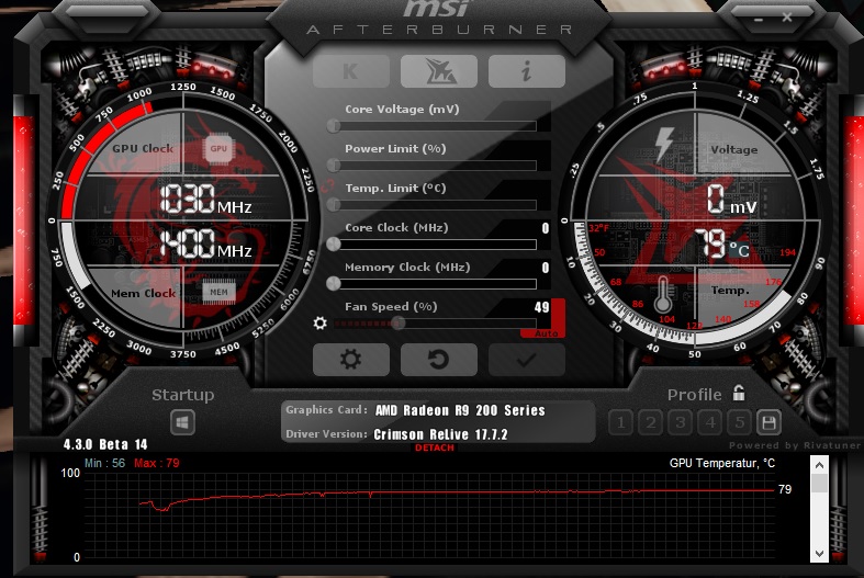 Lade dir mal den MSI-Afterburner runter und lade ein Bild mit den dort angezeigten Daten hoch.