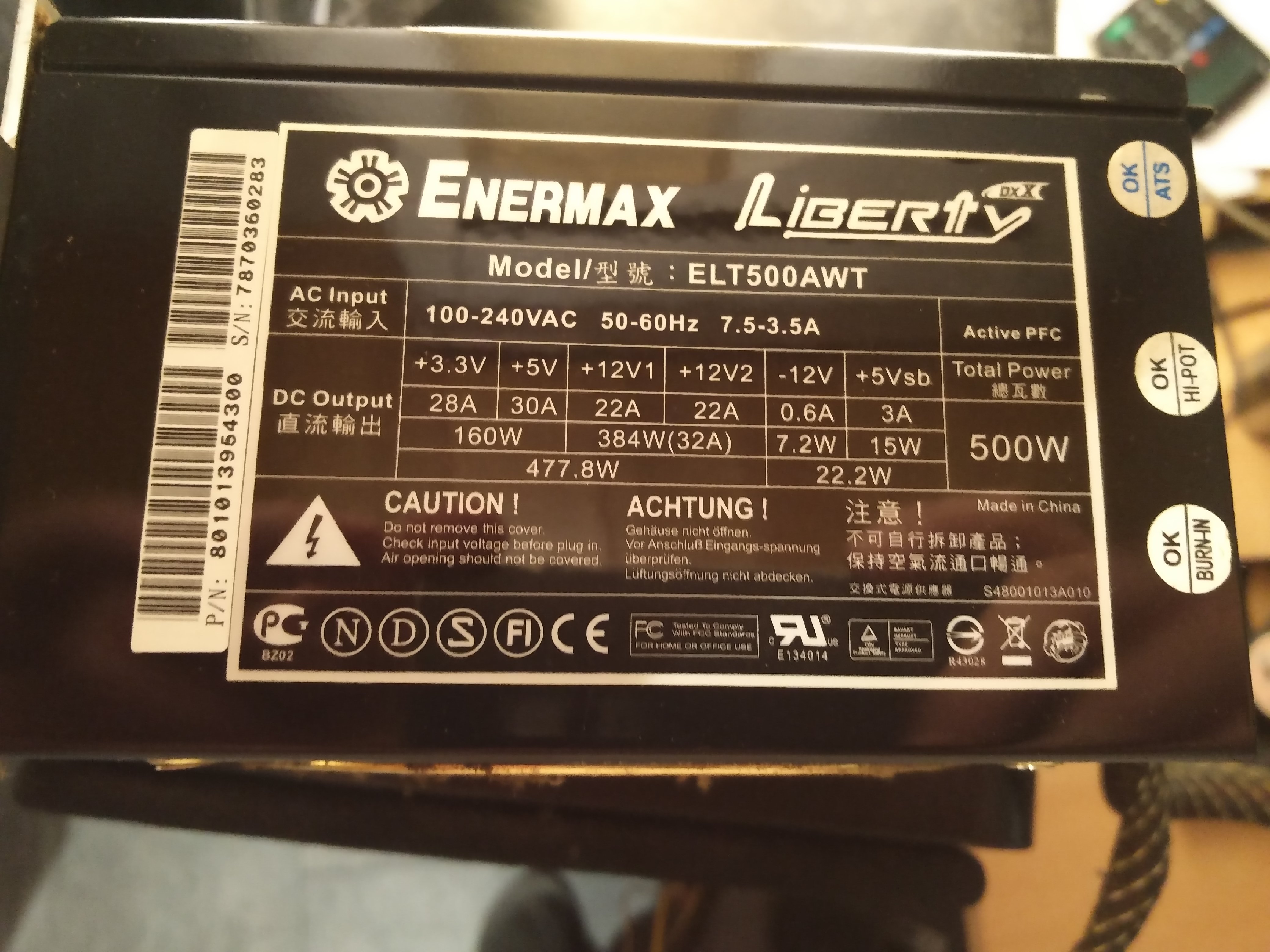 Das Netzteil ist ein Enermax Liberty DX II mit 500 Watt