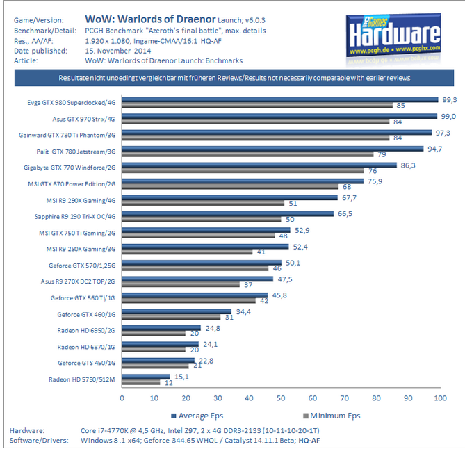 Klar ist die 970 besser, aber kostet auch nochmal 50% mehr(du bekommst momentan einfach fast keine 970 für 300€ eher 340). Wenn es nur um WoW geht würde also die 770 locker reichen, auch wenn sie sich natürlich in anderen Spielen der 290 etc. geschlagen geben muss. Daher ja meine Frage wie wichtig WoW ist.