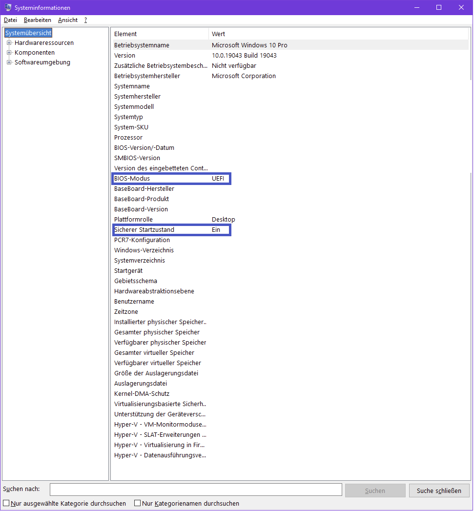 Danke für die Antwort. Ist bei mir aus.Hauro schrieb:UEFI und Secure Boot Einstellungen unter Windows überprüfen