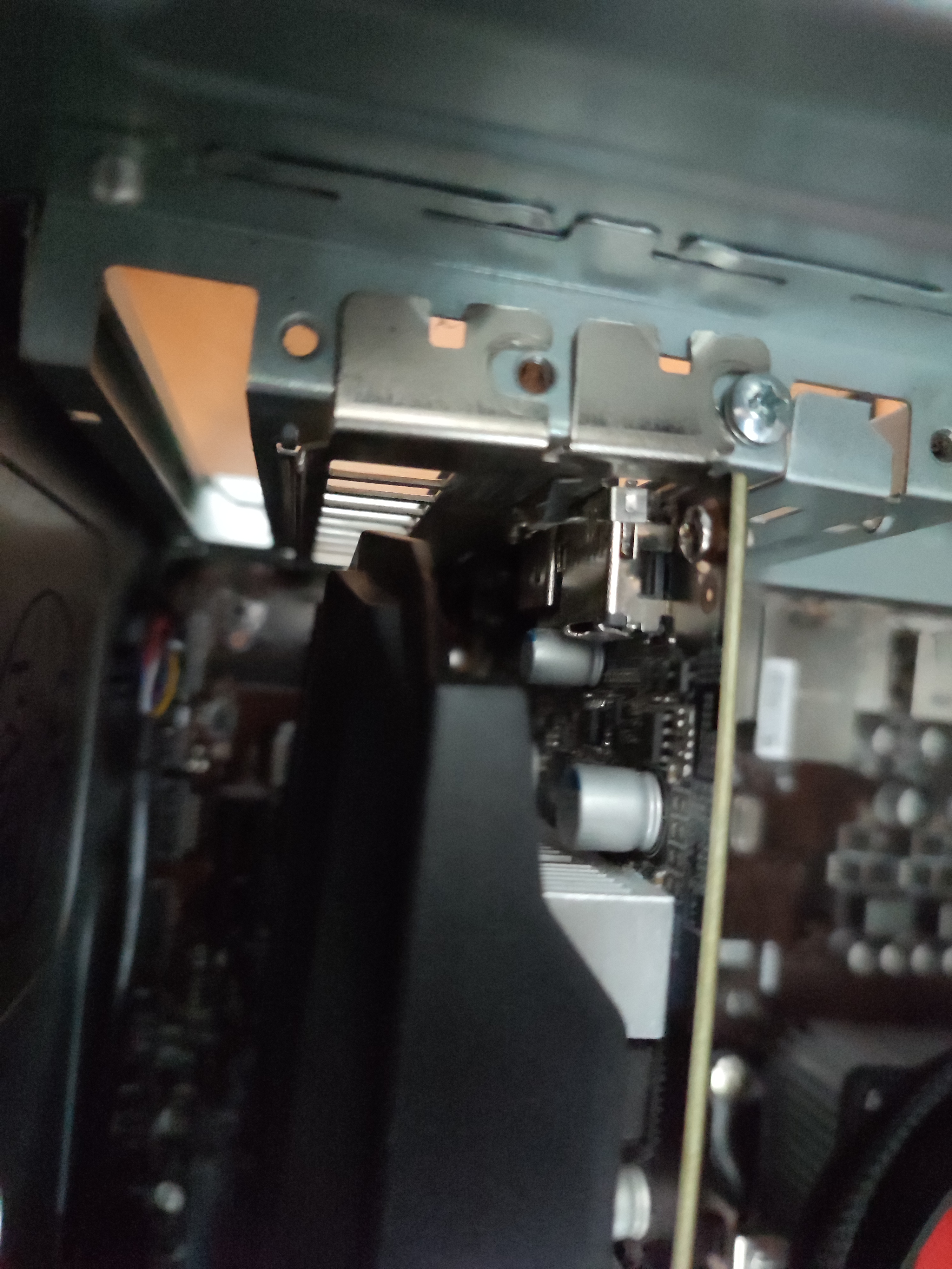 Es passt; ob die kleine und leichte GTX 1050 Ti mit einer oder zwei Schrauben an der Rückseite befestigt ist, ist egal und wenn die GPU (wie es mMn aussieht) gerade im PCIe Slot sitz, passt es auch.wuselsurfer schrieb:Nö das mit der Schraube paßt nicht so.