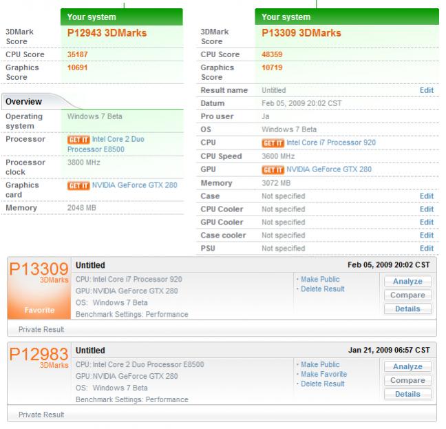 Insofern der i7 bei manchen Benchmarks nicht gerade rosig abschneidet, muss man natürlich schauen, inwiefern das Potential des i7 dort überhaupt abgerufen wird. Es ist nicht weiter verwunderlich, dass ein Benchmark, der nur zwei Kerne anspricht, einen Dualcore vorne sieht. Schaut man sich Programme an, die alle virtuellen acht Kerne des i7 nutzen können und die klar CPU-lastig sind, kann man die Mehrleistung des i7 gut erkennen. Bei WinRAR-Anwendungen schlägt zB selbst der kleine i7-920er mit nur 2,66Ghz einen QX9770 mit 3,2Ghz.