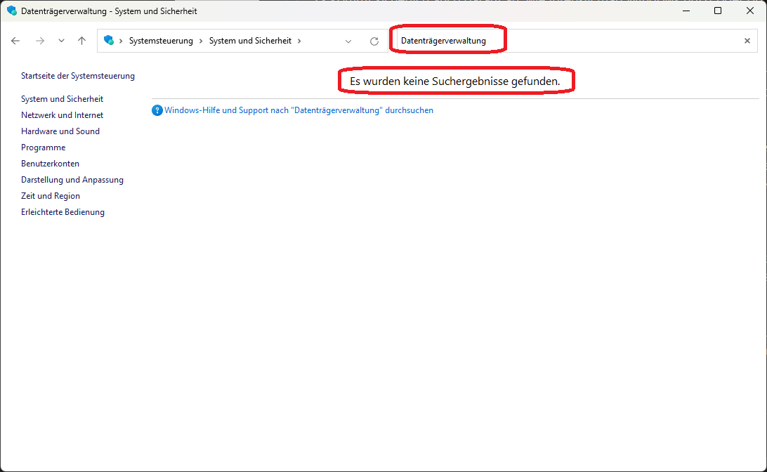 Möchte man es manuell anklicken, so darf man in der Systemsteuerung erst auf "System & Sicherheit", "Windows-Tools" und dann auf ... oh Mist, es ist ja gar nicht mehr da! Dabei sagt die Systemsteuerung irreführend noch, dass es dort abliegen würde.