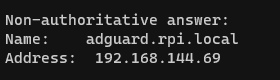 NSLookup auf adguard.rpi.local liefert mir jedoch den RaspberryPi zurück
