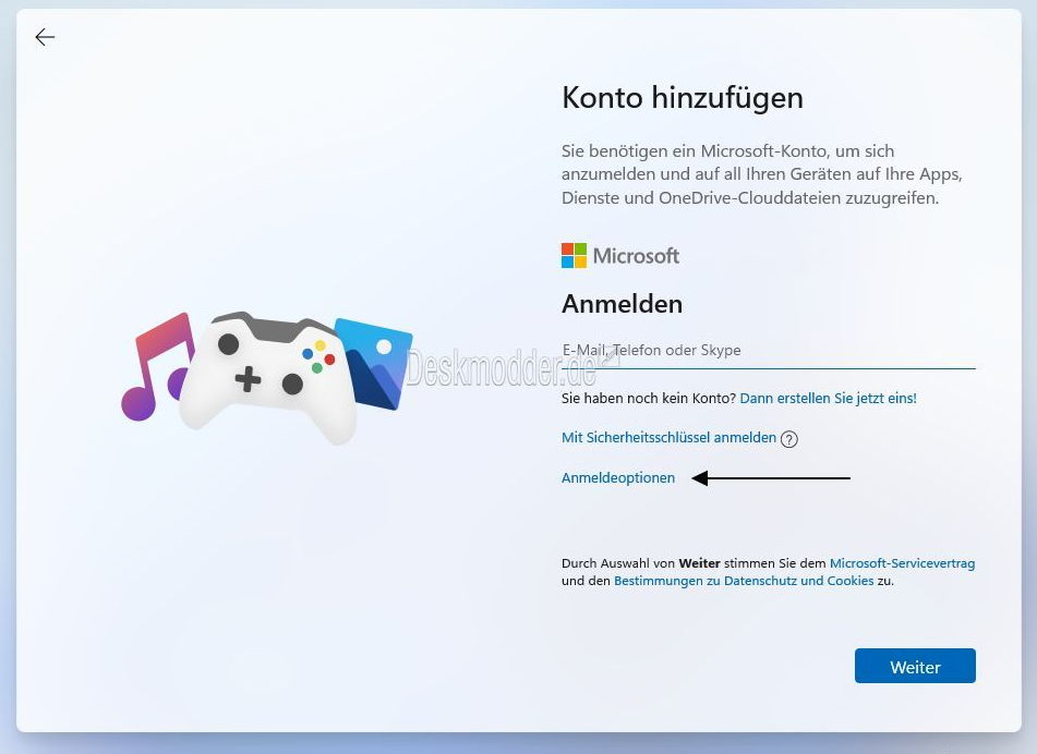 finde ich die Option „Stattdessen mit einem Microsoft-Konto anmelden" nicht.