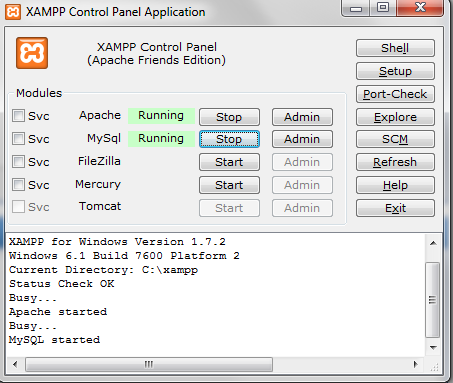 Es wird nur XAMPP benötigt. Dabei handelt es sich um eine Sammlung von Serverprogrammen (Apache, MySQL, PHP und Perl).
