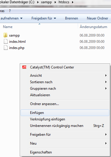Diesen markierst du und kopierst ihn nach C:\xampp\htdocs bzw. in das Installationsverzeichnis von XAMPP.