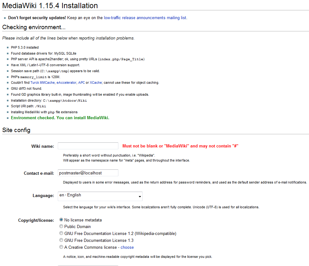 Nun öffne folgende Seite: http://localhost/Wiki/index.php