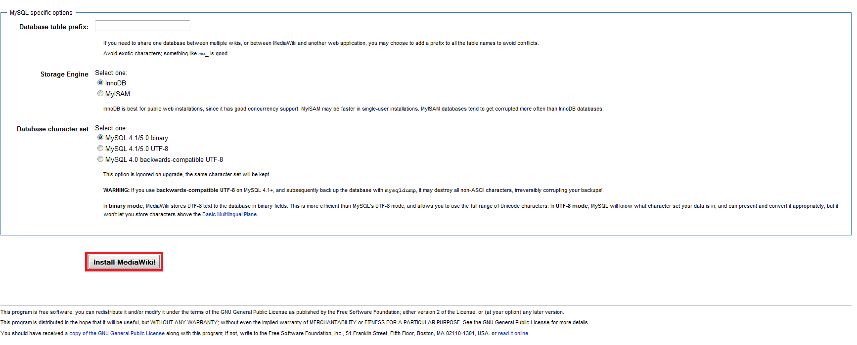 Abschließend klickst du auf Install MediaWiki!