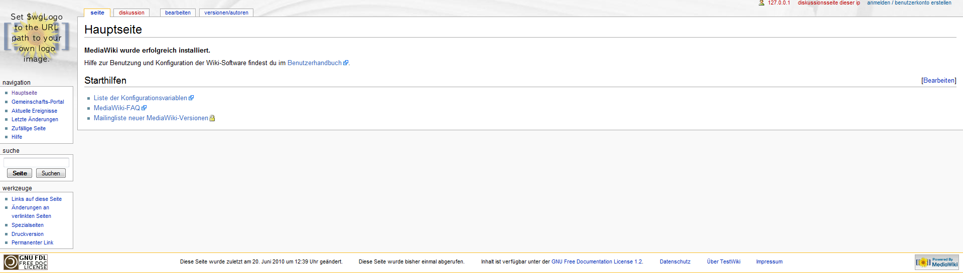Nun öffnest du folgenden Link: http://localhost/Wiki/index.php