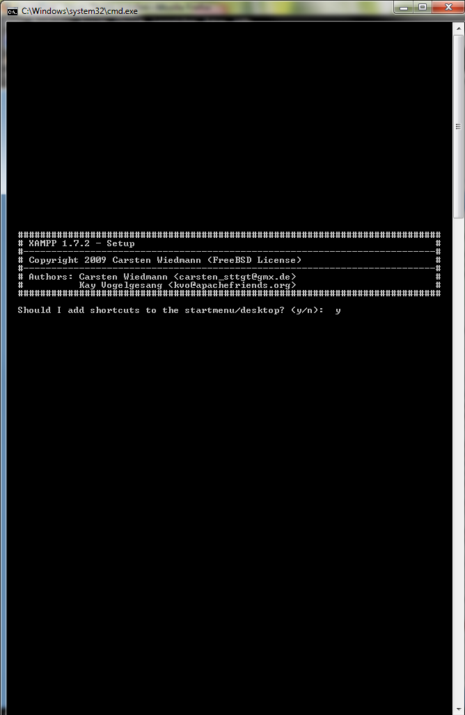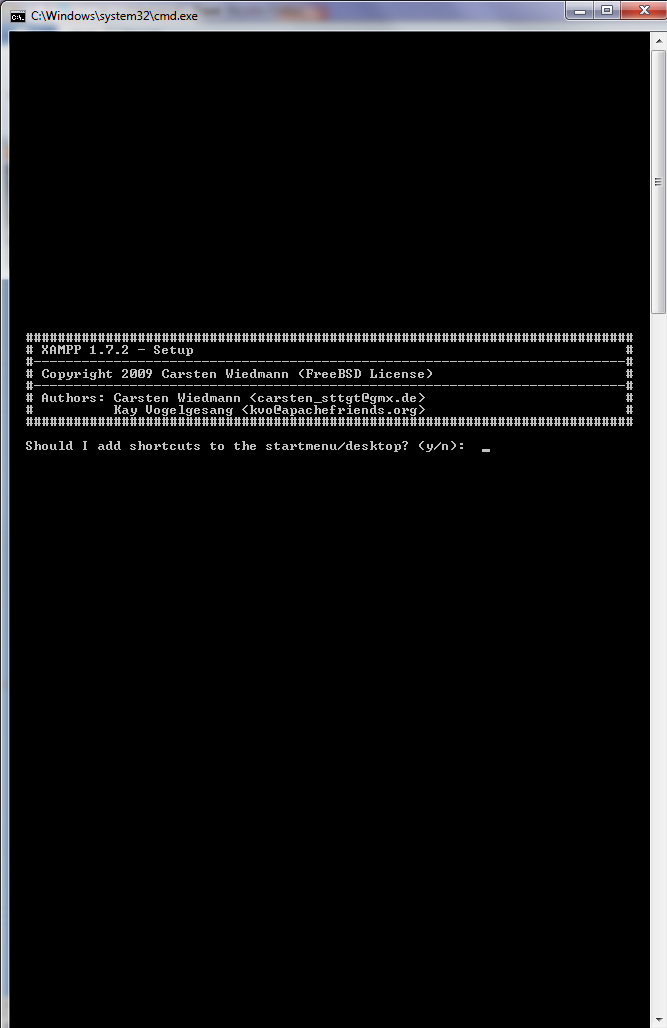 Als erstes musst du dich entscheiden, ob du eine Verknüpfung auf dem Desktop erstellen willst. Drücke entweder n (no/nein) oder y (yes/ja) und bestätige mit Enter.