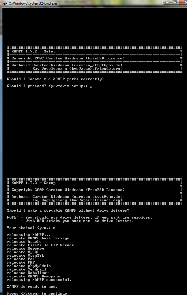 Normalerweise erneut mit Enter bestätigen. Falls du eine portable Installation erstellen willst, drücke y und bestätige dann mit Enter.
