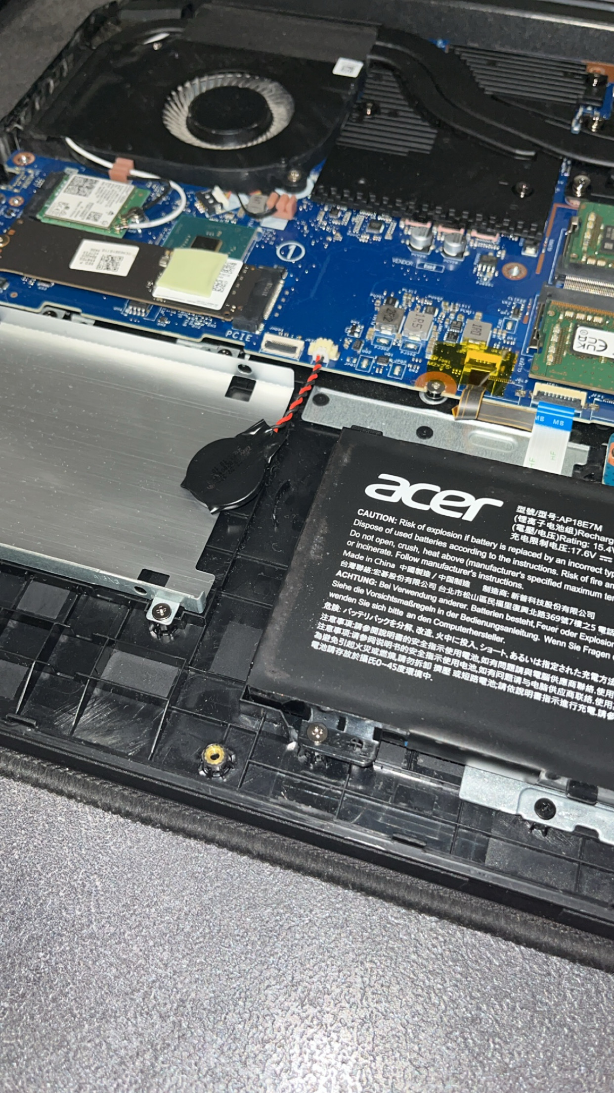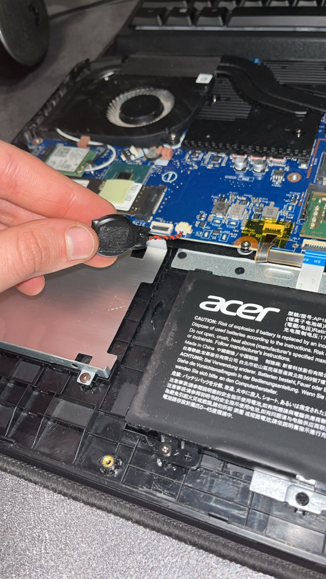 Habe gerade meinen ca. 2 Jahre alten Acer nitro 5 zum ersten mal aufgemacht um meine SSD und RAM nachzurüsten. Dabei habe ich entdeckt dass da einfach ein Loses Teil herumhängt welches nicht so aussieht alsob es dafür bestimmt ist einfach rumzuhängen. Kann mir da jemand weiter helfen und mich aufklären? Vielen Dank im Voraus