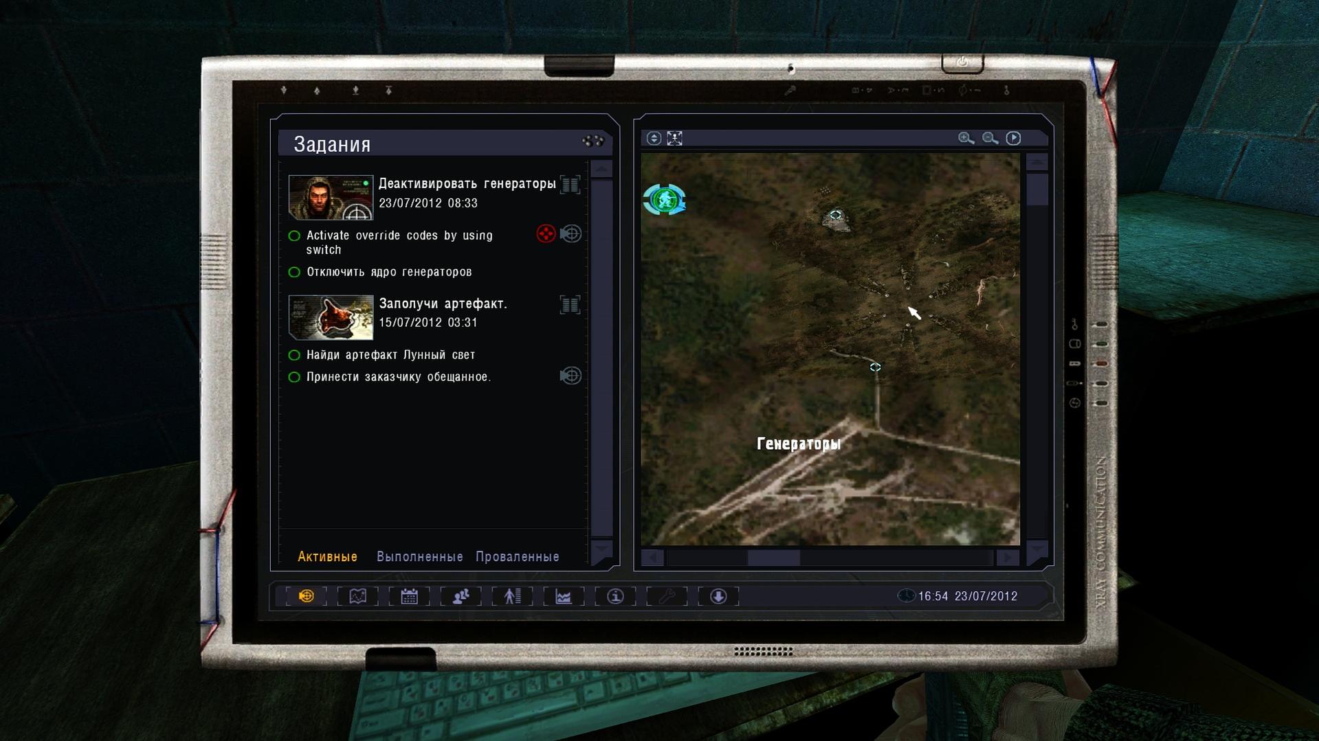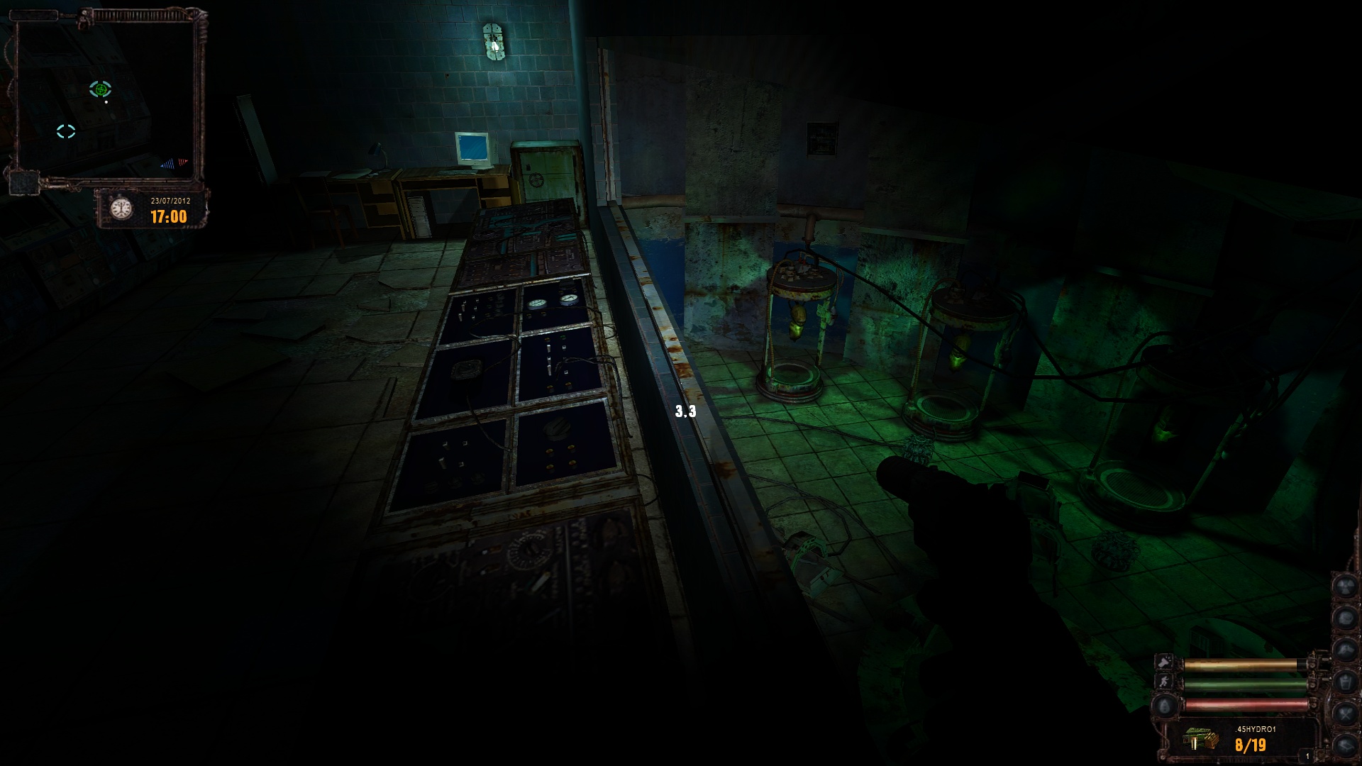 Guten Tag Stalker, habe inzwischen bis zum Level "Generatoren" geschaft... da ordentlich mich mit "Artefakten" eingedeckt und nun runter ins "X2-LABOR" habe dort einige Aufträge ausgefürt; "Stromversorgung wiederherstellen" usw. dann runter in den keller , da noch den PC ausgelesen um den "DOOR-Code 2345" zu bekommen. hinter der TÜR war so ne fliegende "Feuer-Anomalie" die vernichtet , und scho war der zugang zu dem Kotnrollraum frei.