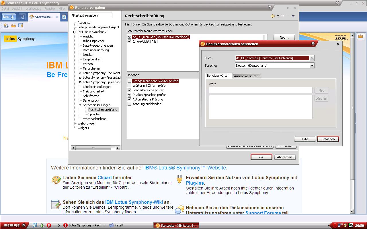 Weiß jemand wo ich die *.dic Datei hinkopieren muss? In den Einstellungen kann ich zwar die benutzerdefinierten Wörterbücher irgendwie aktivieren aber die sind halt leer. Weiß jemand wie ich meine *.dic's jetzt mit Lotus Symphony verknüpfen kann?