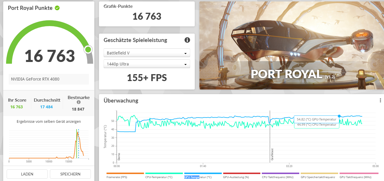 Interessant hierbei ist, dass TimeSpy mehr verbraucht (auch höhere Frameraten schafft), als Port Royale. Dafür ist Port Royale wesentlich anfälliger für falsche V/F-Einstellungen.
